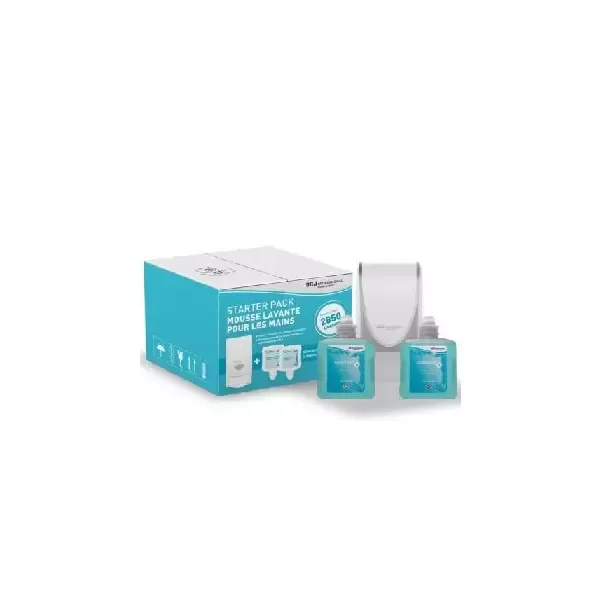 Ce pack se compose d’un distributeur savon avec deux cartouches savon mousse de 1L . Il s’agit du distributeur blanc à cartouche quick view qui permet de visualiser le niveau de savon dans la cartouche. Cela permet de prévoir son remplacement plus facilement.