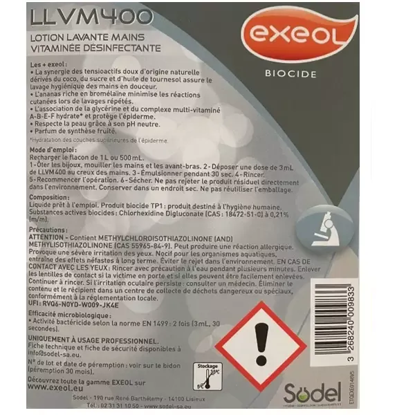 EXEOL LLVM400 Lotion Lavante Antiseptique pour les mains